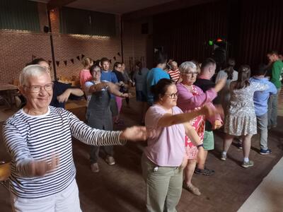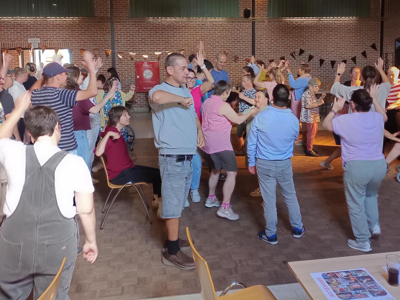 Feest bij Mekanders! Op de Mekandersfuif in Dessel gaan alle cliënten en hun begeleiders samen uit de bol op de muziek van dj Boer Jan. Ze smullen tussendoor van een frietje met vleesje en sluiten af met een verfrissend ijsje. Een namiddag vol plezier, muziek en samen genieten!