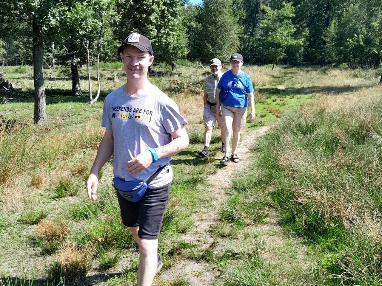 Leo, Leen, Joery en begeleidster Purdy lopen hun beentjes los in het vennengebied.