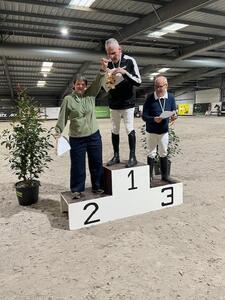 "Op vrijdag 7 november mochten wij deelnemen aan een dressuurwedstrijd met ons paard “Bolleke” van de Ponyhoeve. De ruiterhal in Weelde werd omgetoverd tot een mooie piste waar wij met Bolleke een proef moesten rijden. Wij reden van letter naar letter of van tekening naar tekening.