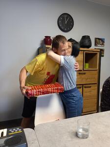 Lekkere vidée met frietjes en veel leuke cadeautjes! Viviane is helemaal in de wolken met deze fijne verrassing van haar collega's van De Villa.