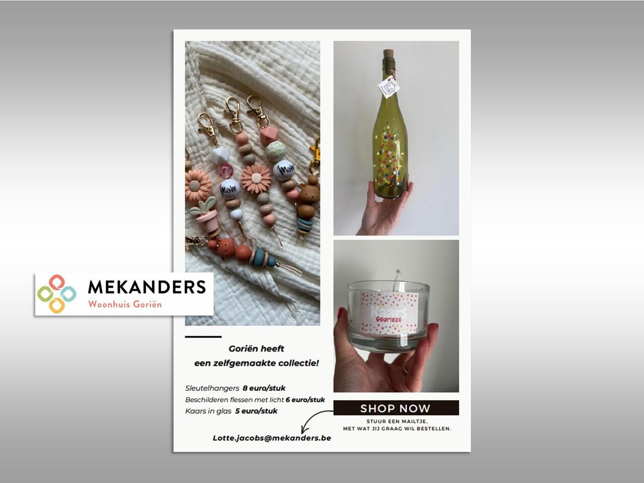 De bewoners van Goriën hebben hard gewerkt op hun crea-namiddag. Ze verkopen originele en decoratieve kaarsen, sleutelhangers, flessen, ...