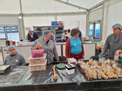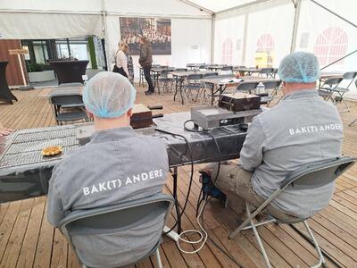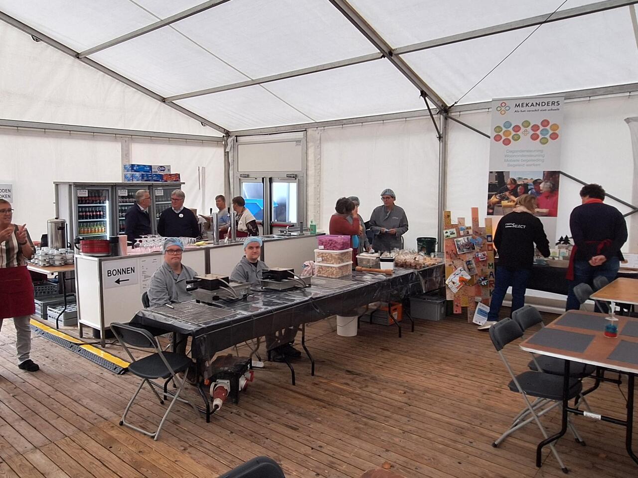 De ploeg van MarkSaam heeft de eer om tijdens de OpenBedrijvenDag de cafetaria van RaamSelect te bedienen. Cliënten van atelier Bak(t)Anders bakken ook verse wafeltjes en koekjes. Extra gezelligheid in de tent!